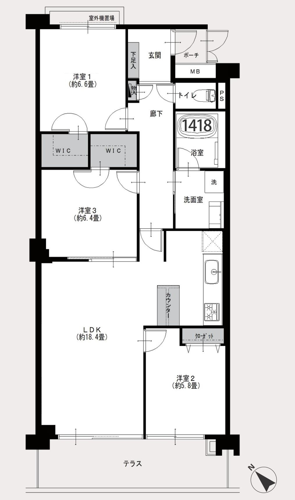 角部屋・3面バルコニー・ペット可(細則有)・宅配BOX・エレベーター・オートロック・エアコン・システムキッチン(ガス3口)・バイク置き場・駐輪場・浴室乾燥機・追い焚付浴槽