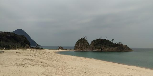 人一人いないビーチ、日本海の海って荒々しいイメージだったのですが美しい景色が見れた。