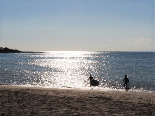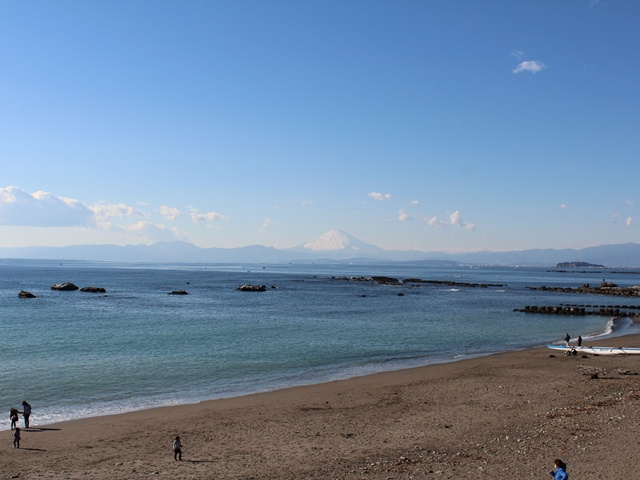 海を眺めれば、その先に江ノ島と富士山を望む。