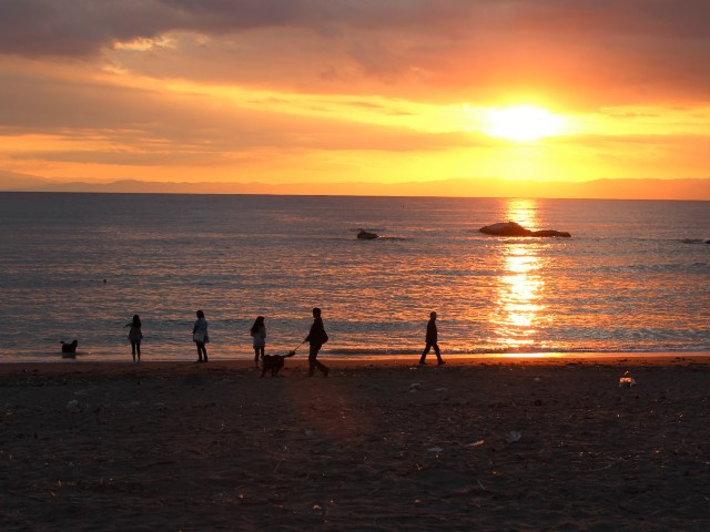 夕刻時には、海へと日が沈むオレンジ色の景色。