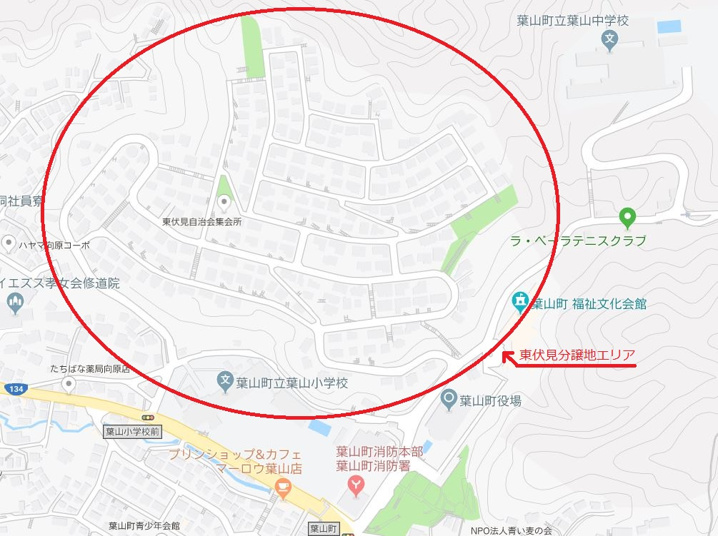 東伏見分譲地というのは葉山町役場や葉山小学校の近く。