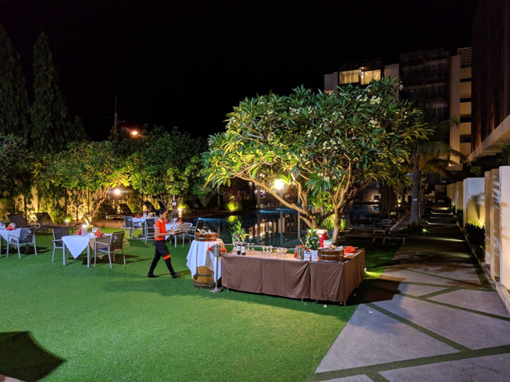 中庭に広いプールとバーがあります。