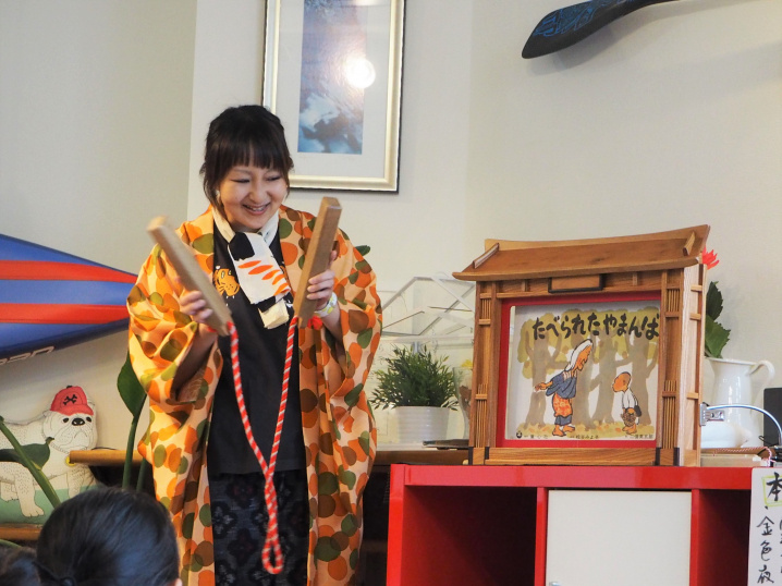 今回イベントに来ていただいた東京都公認紙芝居師の「三橋とら」