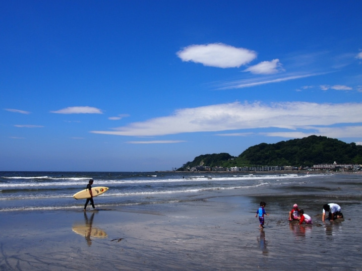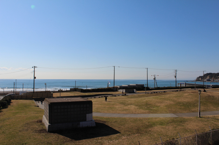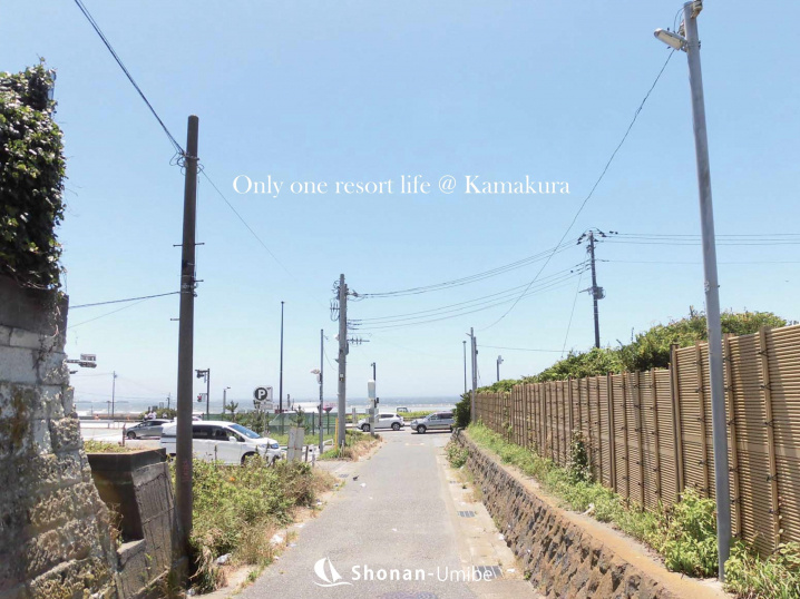 マンションの目の前にはR134、その先に由比ガ浜海岸