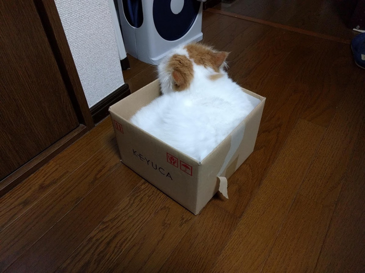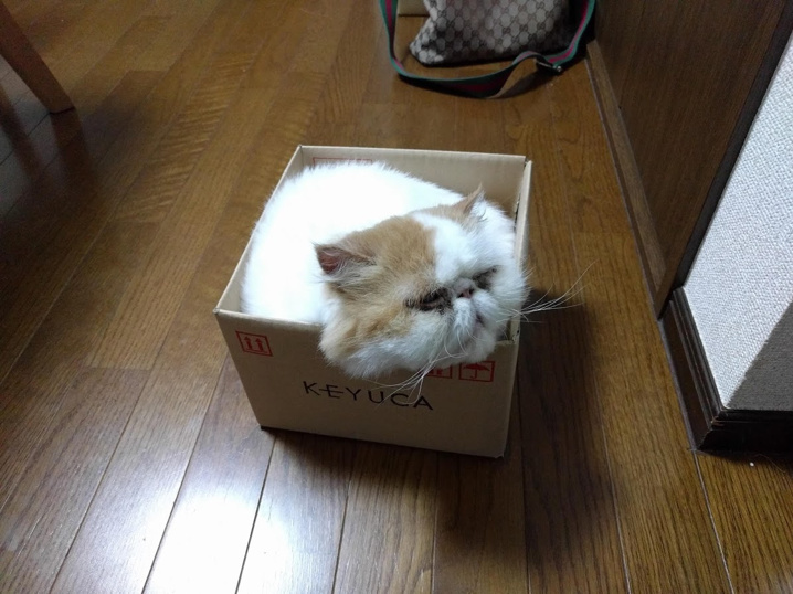 我が家の猫は段ボールが好きなのですが先日とっても小さい段ボールにフィットしてました。