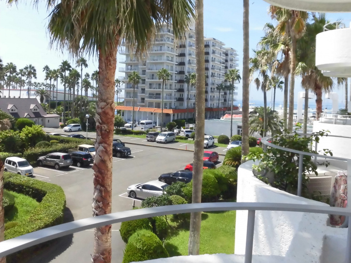バルコニーから左右を見渡せば、少しですが海を望むリゾートルーム。