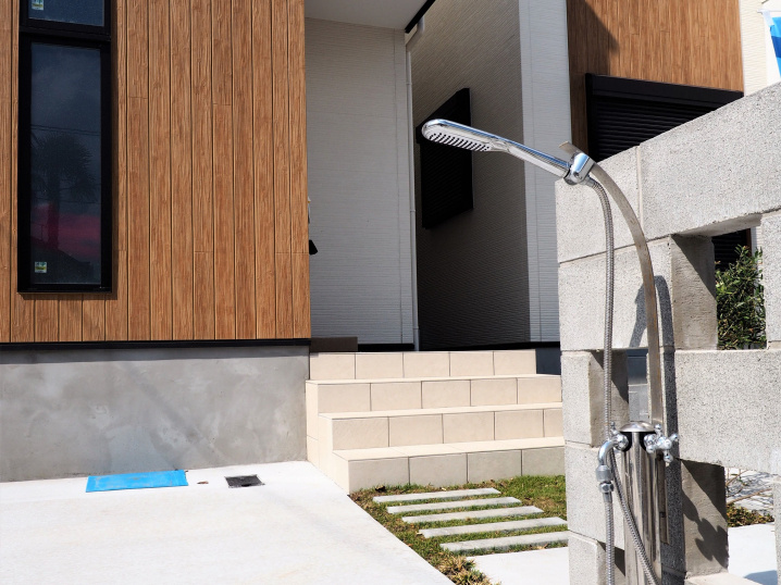海まで歩いて10分ほどの海辺のマイホームには、必須アイテム「屋外シャワー」も完備していますので、思いっきり海を楽しんでください。