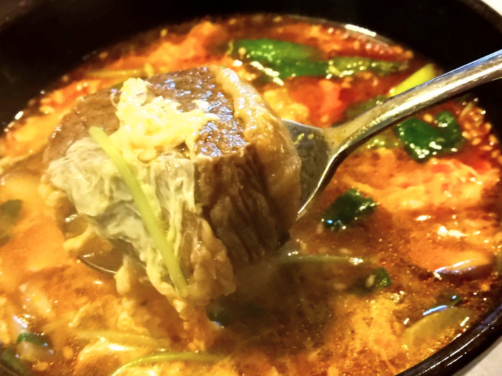 〆は、この肉厚カルビが入った「カルビスープ」