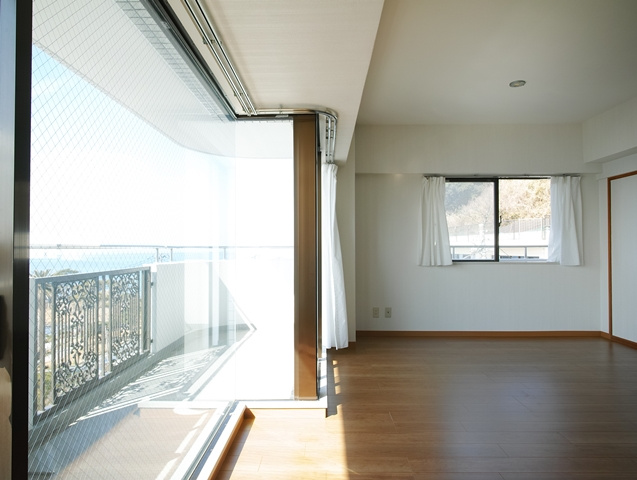 バルコニーはもちろんリビング、キッチンからも海を望む部屋。