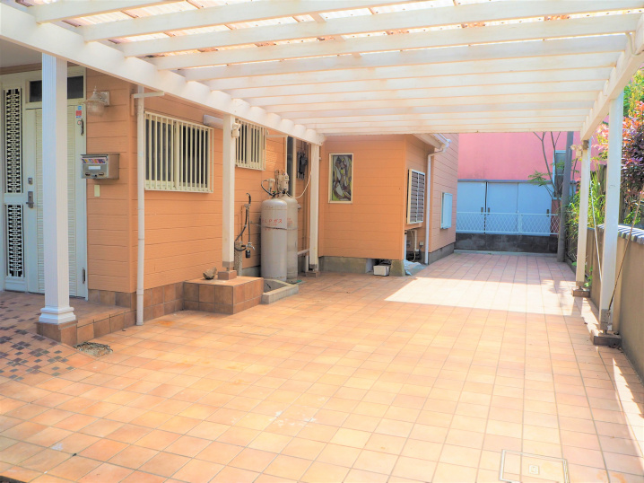 約62坪の敷地には、車2台分のカースペース、南側にテラスのあるお庭。