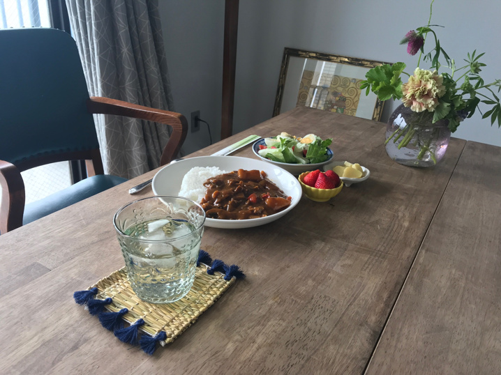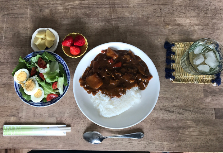 カレーにサラダ、漬物、程よい甘酸っぱさのイチゴは絶妙なバランスを取ってくれます。