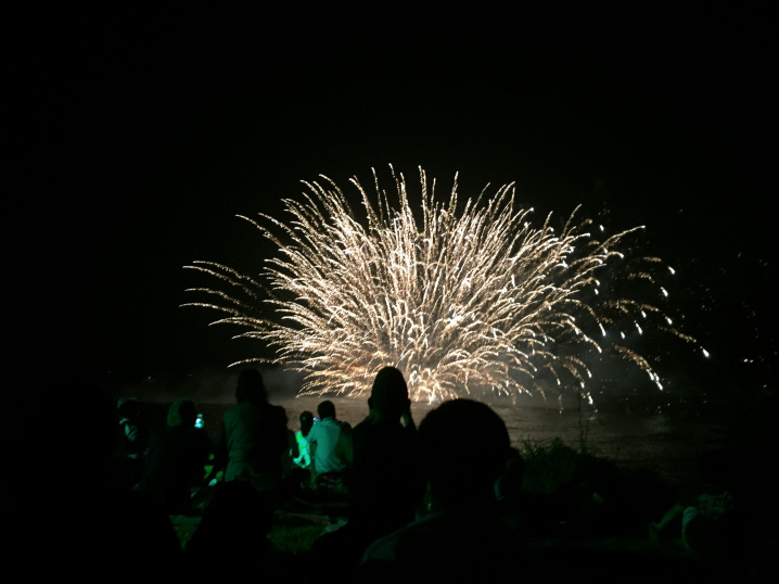 名物の水上花火。とにかく近いのですごい迫力です。