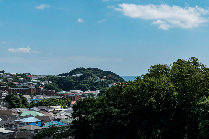 逗子マリーナの海のリゾート景色と、緑溢れる山が広がる小坪の街並み。
