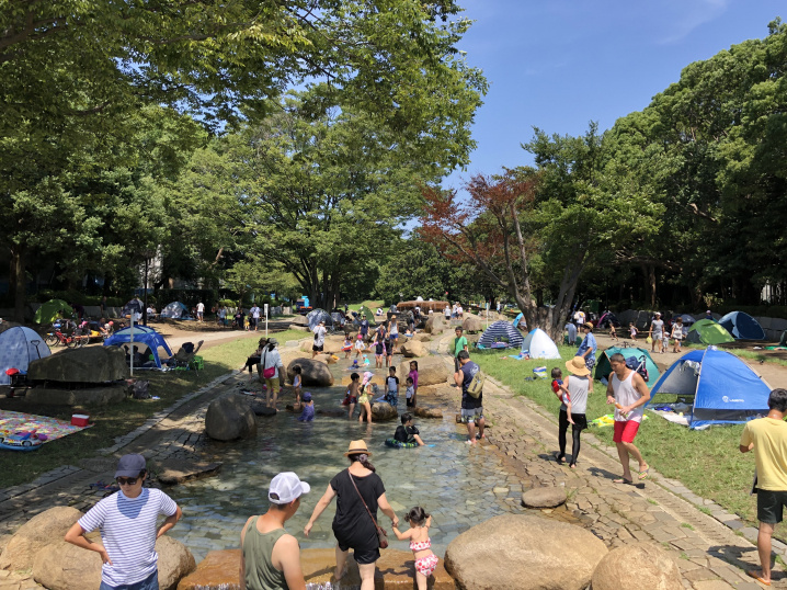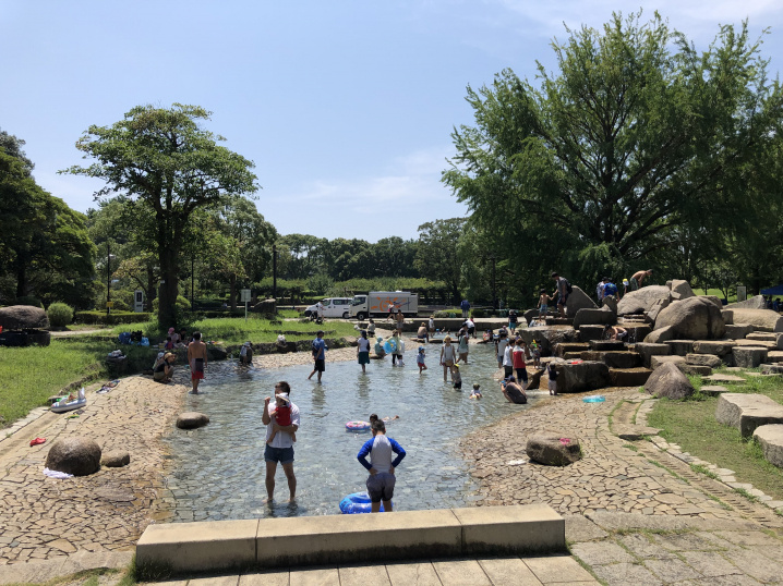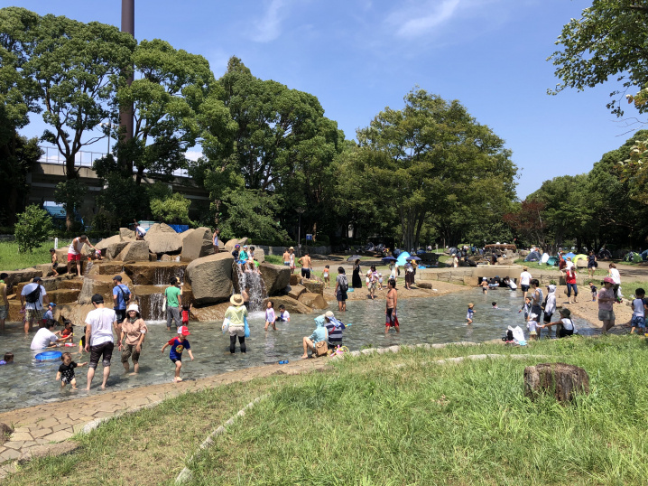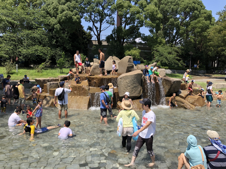 写真は、8月に遊びに行った平塚総合公園の流れの広場。