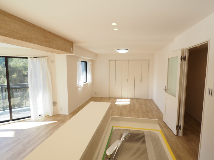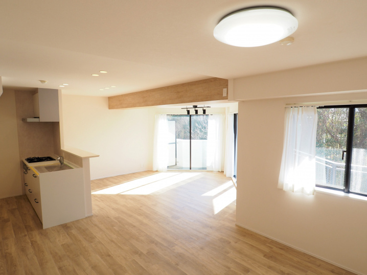 元の3LDKを2LDKに変更し、キッチンやユニットバス、トイレなどの各所新規交換されている。