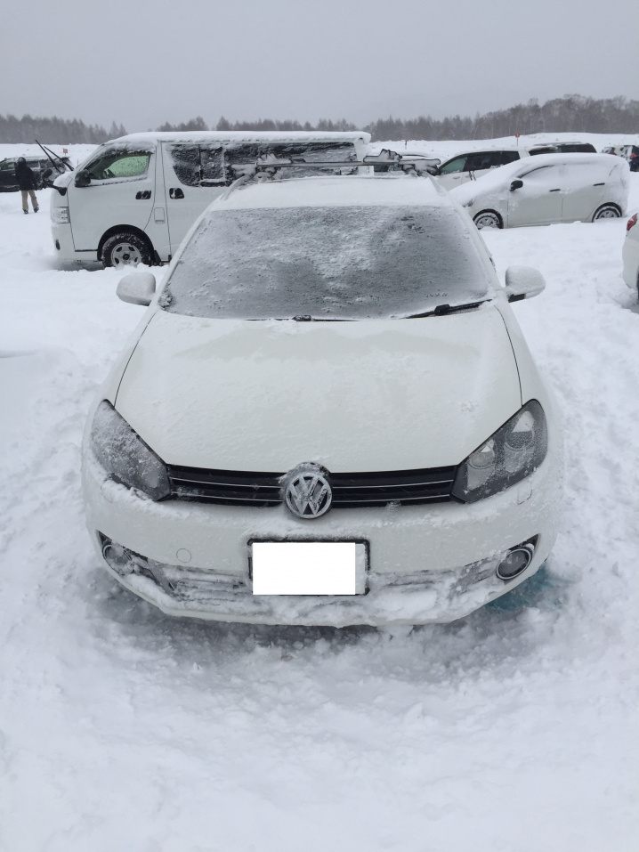 車が凍っていました、、しかも、この駐車場に入る時は新雪で30センチ程積もっており、買い替えたばかりのスタッドレスが機能せず立ち往生。。