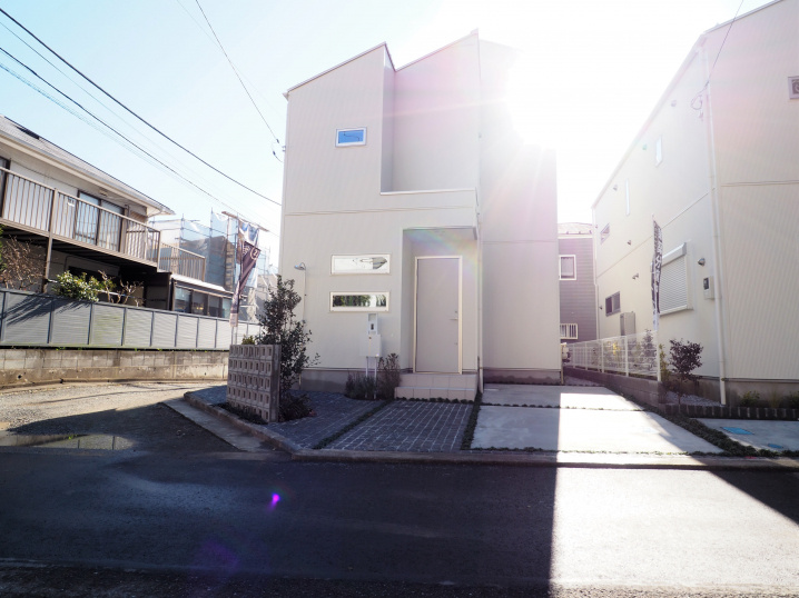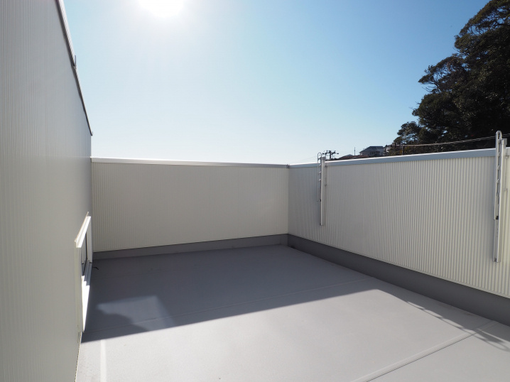 全2棟の新築戸建ては、スカイバルコニー付きの木造2階建て。
