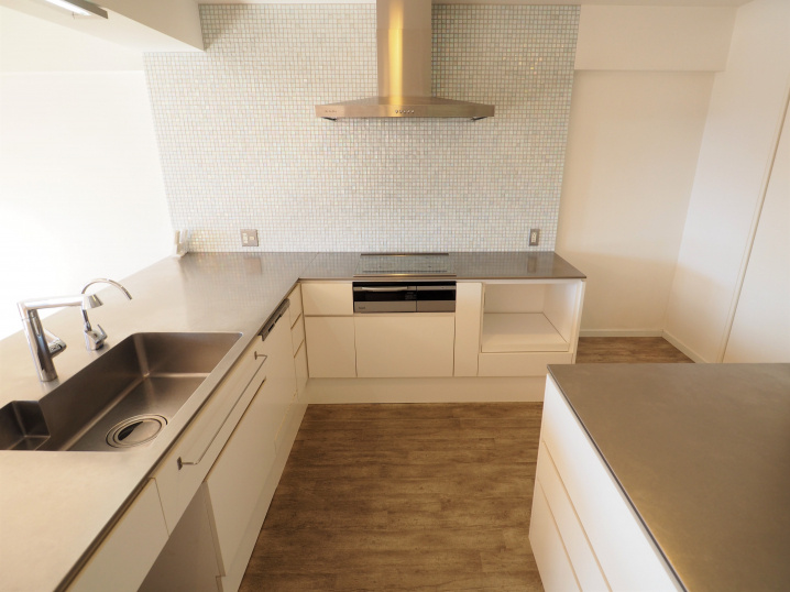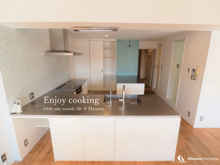 玄関を開ければ明るい光が飛び込み、LDKへと進めば広いキッチンスペースが現れます。