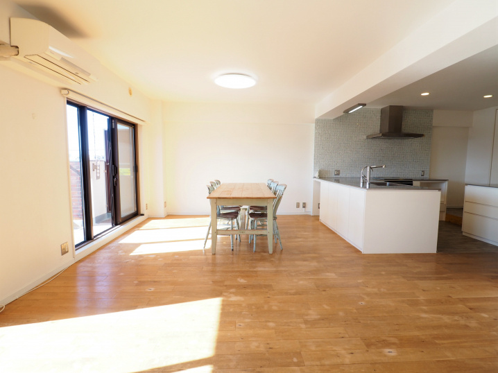 約24帖のLDKは南側の開放部が広く暖かな陽光が降り注ぎます。