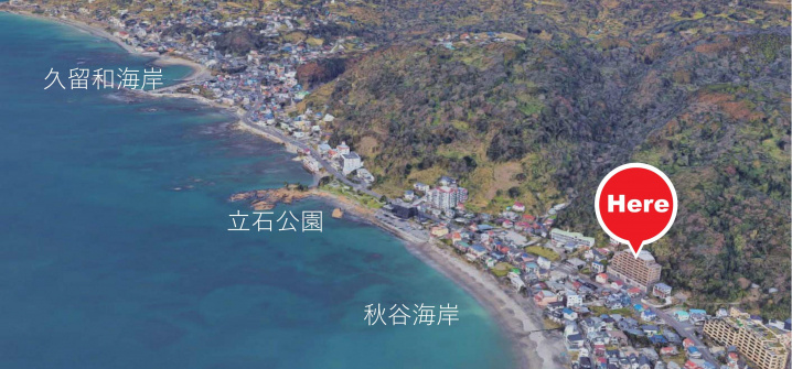 穏かでスローな時間が流れる秋谷海岸へは歩いて2分。