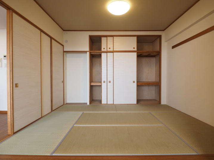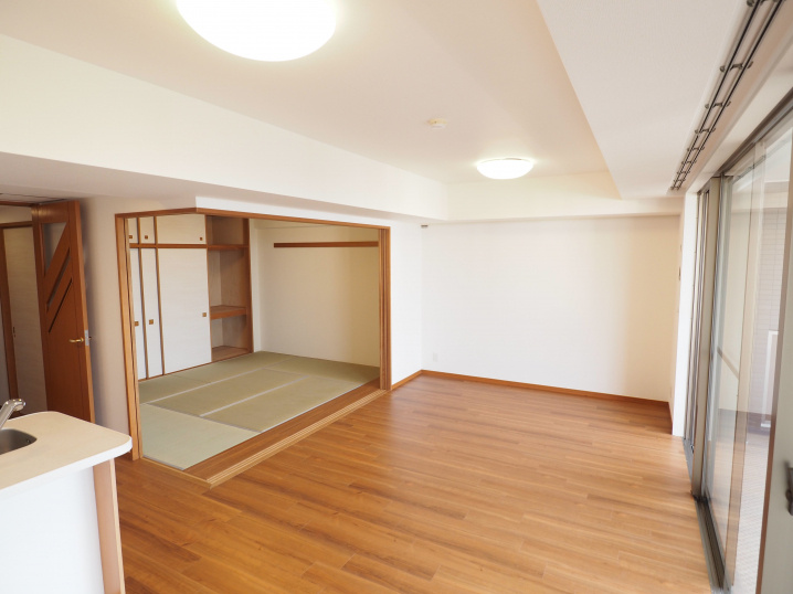 目の前はマンション敷地内の駐車場のため、圧迫感なく青い空を望める景色が広がる。