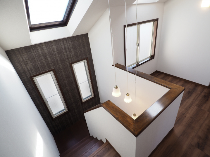 1階2階共に窓が多く、更にサンルームや天窓などが設けられ、どこにいても明るい印象です。