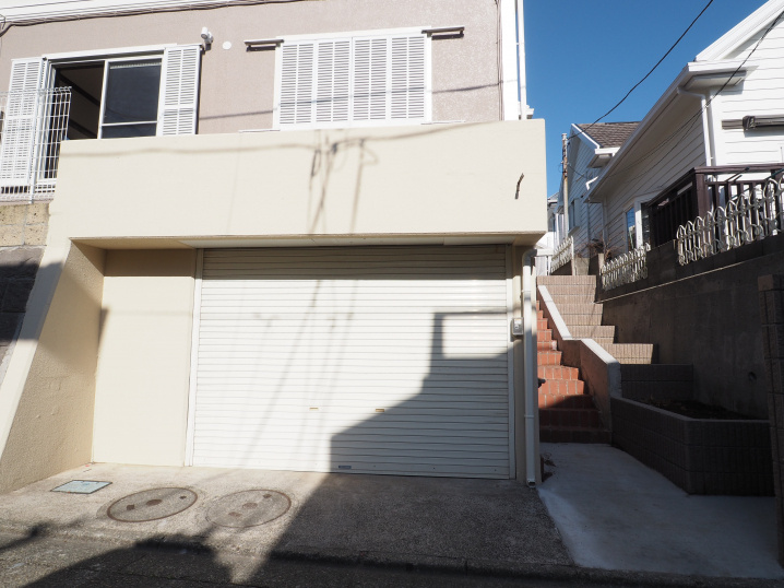 閑静な住宅街の3方角地に建つ地下車庫付きの中古戸建。