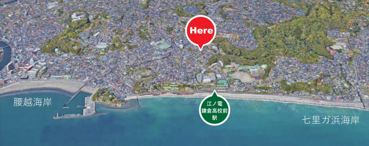 江ノ電「鎌倉高校前」駅から徒歩約10分。