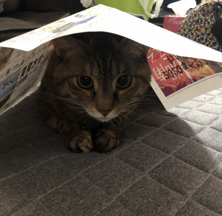 寒かったのか、チラシに潜って暖をとっていたようです。