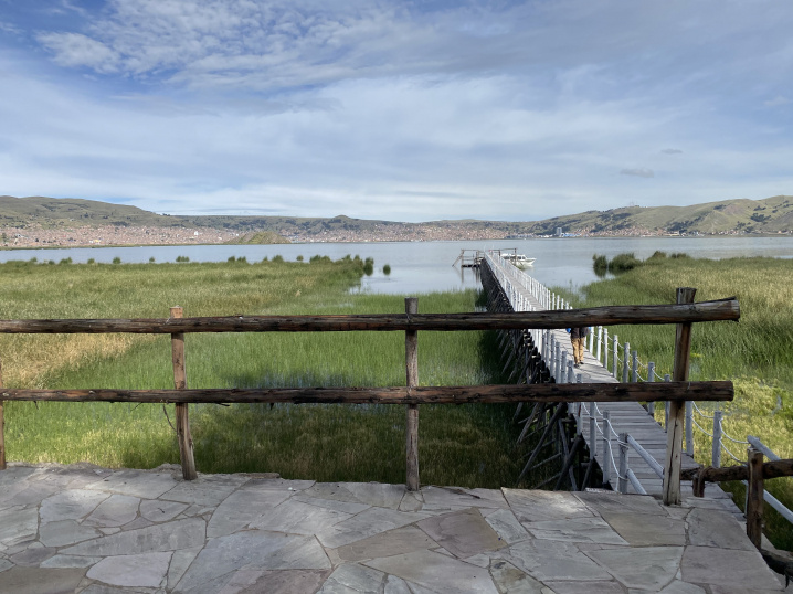 チチカカ湖はペルーとボリビアにまたがる湖。ホテルはまだペルーです!
