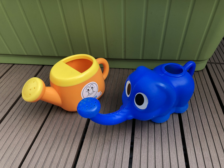 水やりは、このアンパンマンとぞうさんのじょうろで!