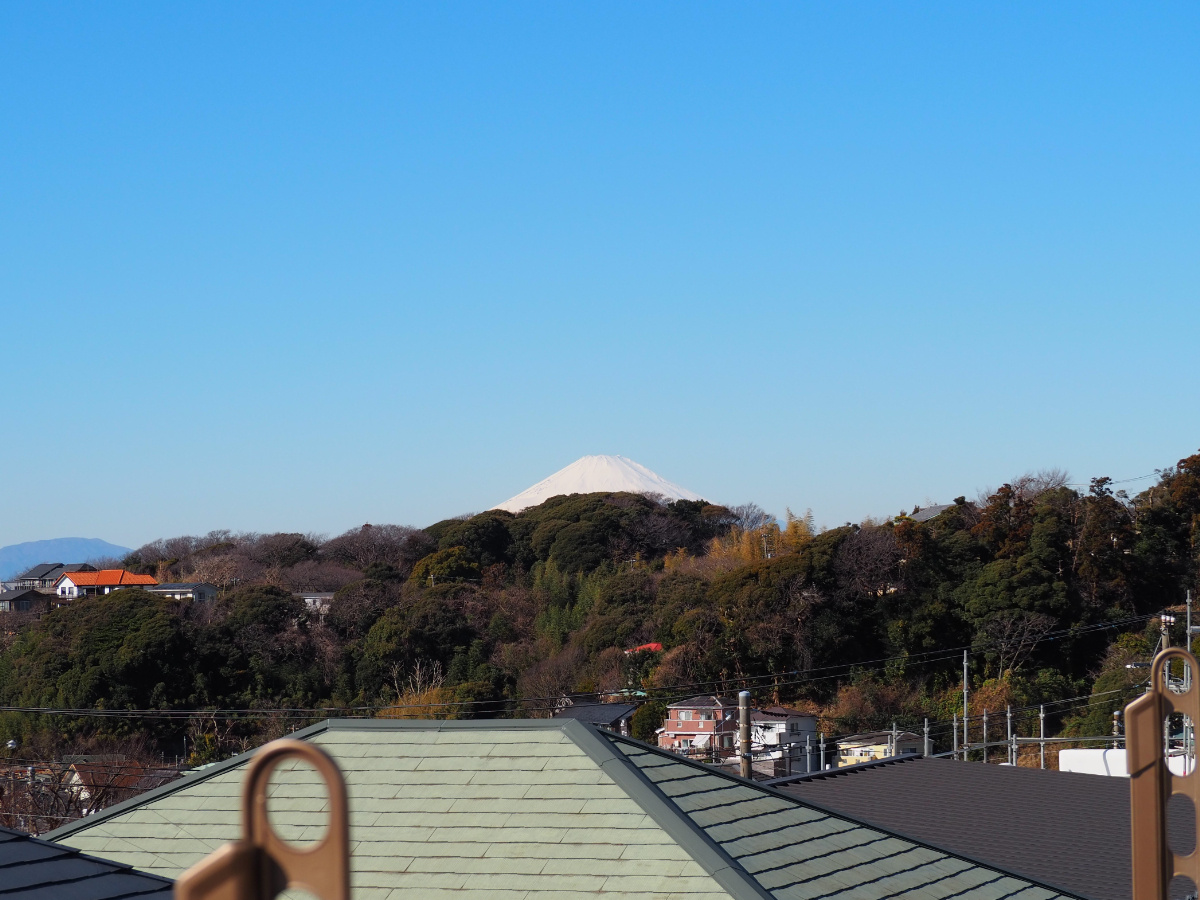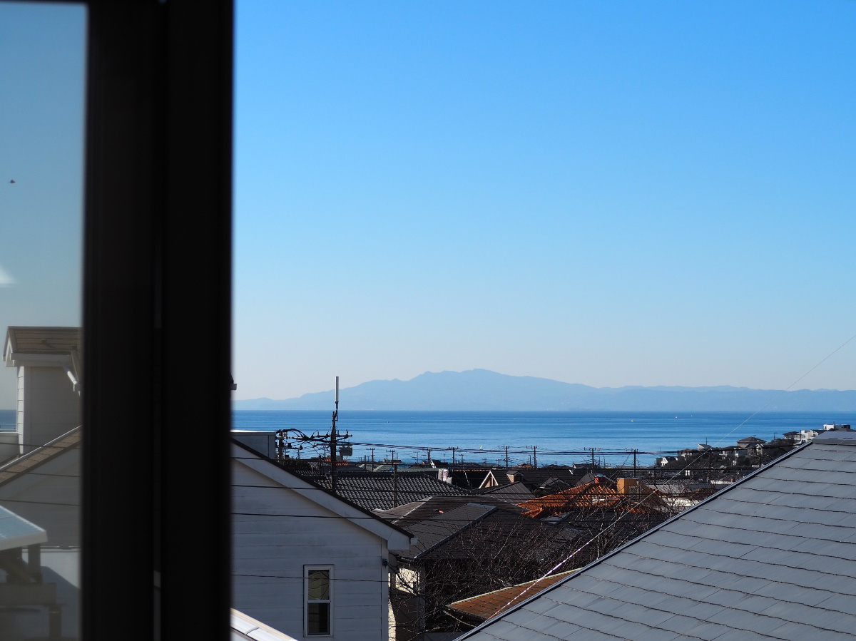 2階の洋室から海を望み、バルコニーへ出れば富士山をも望む景色。