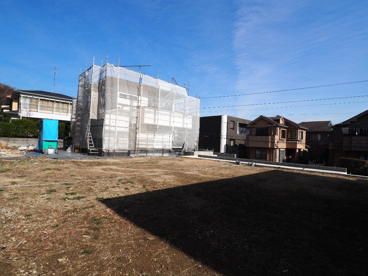 南側隣地も少し下がっているため、1区画は南東側の抜けが良い。