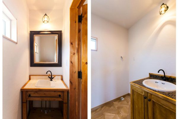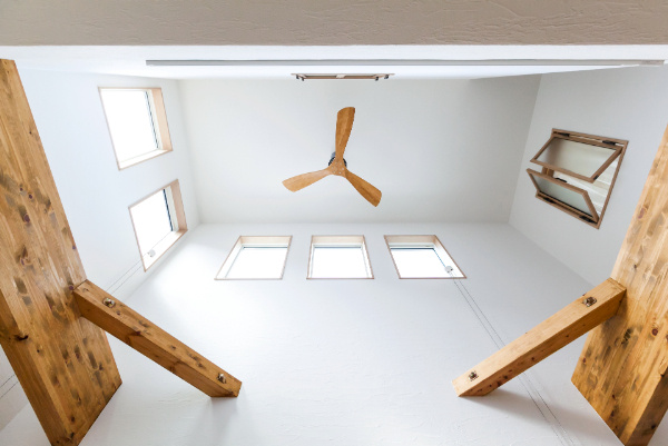 床はオークの無垢材オイルフィニッシュ、壁と天井は漆喰仕上げ。