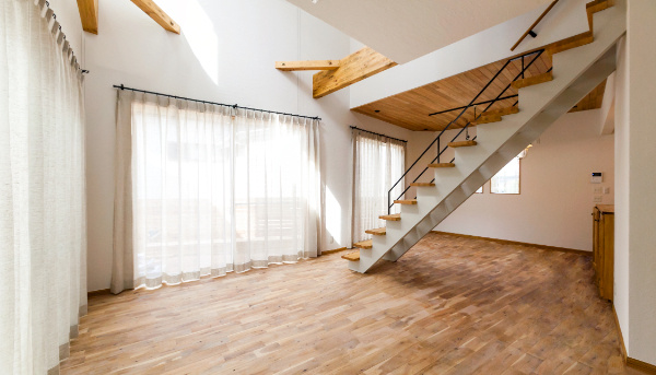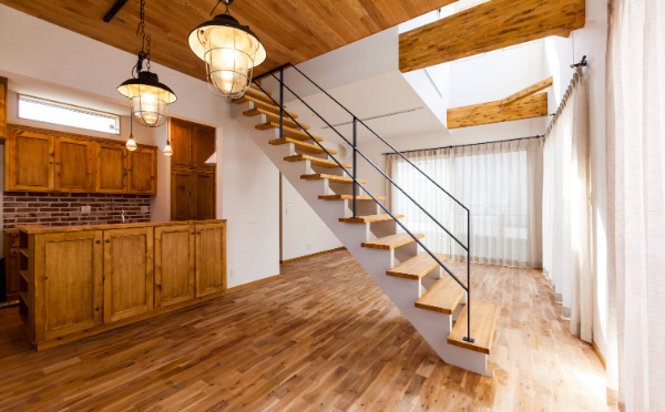 またリビングとダイニングの間に設けたストリップ階段により、仕切られながらも開放感を演出。
