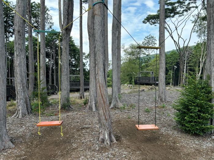 施設内には、ブランコやジップライン、