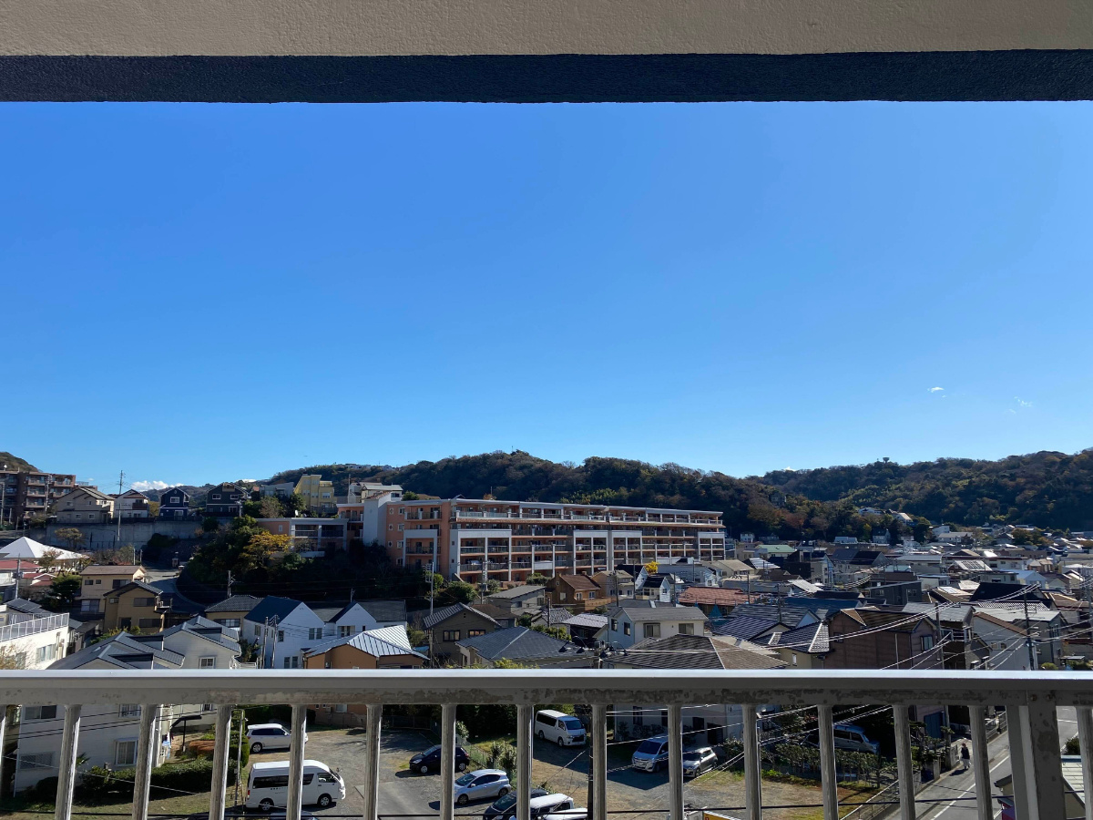 5階からの景色は、葉山の山々を望み、青い空を広く感じる爽快ビュー。