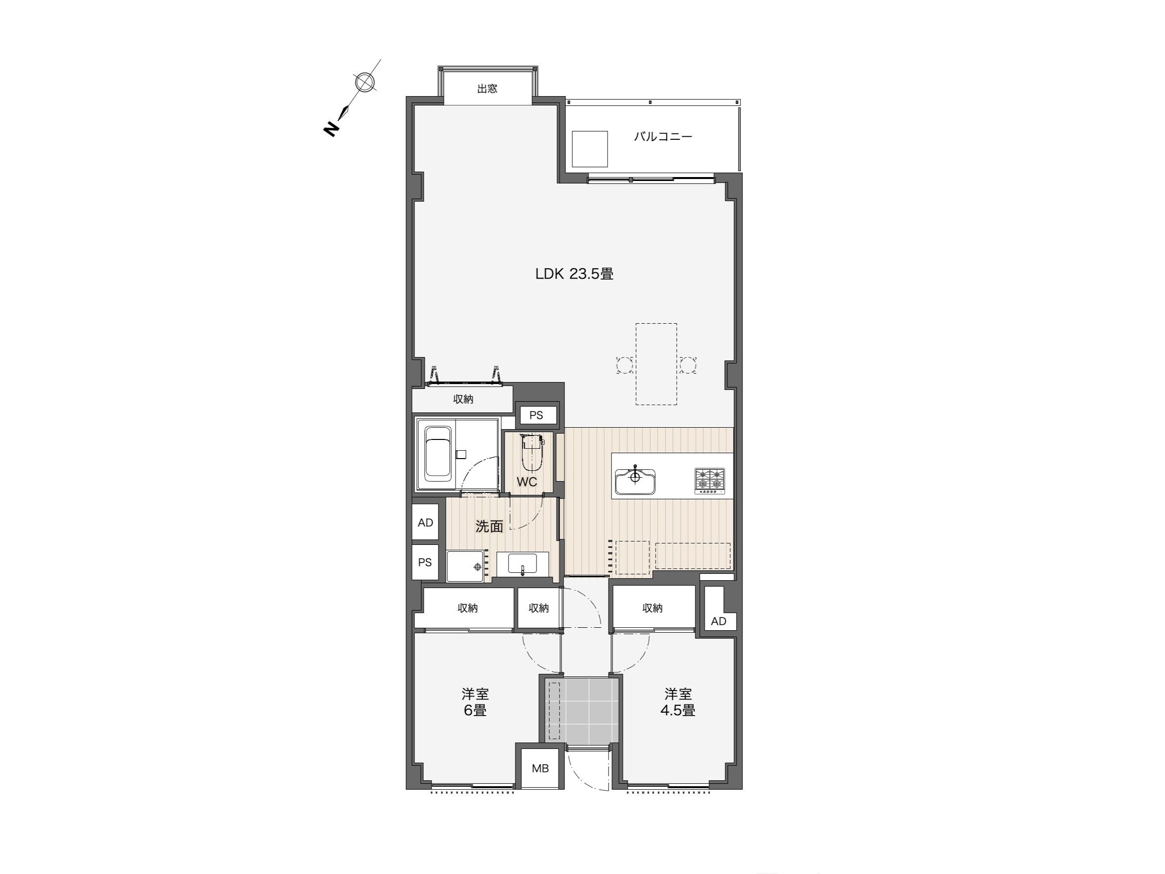 陽当りの良い南東向きのバルコニーに、約23.5帖のLDK。